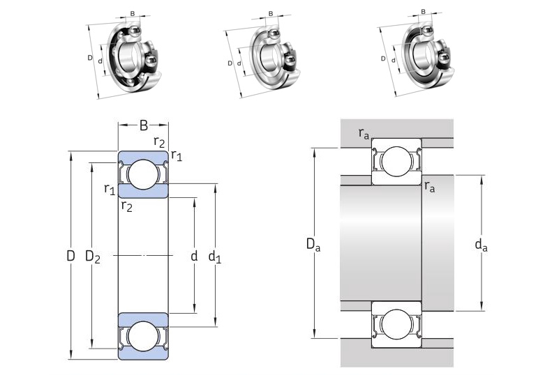 深沟球轴承主要承受径向载荷,也可同时承受径向载荷和轴向载荷。当其仅承受径向载荷时,接触角为零。当深沟球轴承具有较大的径向游隙时,具有角接触轴承的性能,可承受较大的轴向载荷 ,深沟球轴承的摩擦系数很小,极限转速也很高。